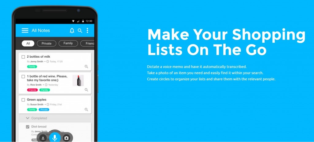 The company provides an efficient tool for taking quick notes and ideas, assigning tasks to family members, friends and co-workers on the go with voice memos, texts and pictures. And sharing is one of the most interesting features of the app since you can create family, friends or some project circles and decide to have copied multiple notes in to-do list to the circles of friends, family or co-workers.
